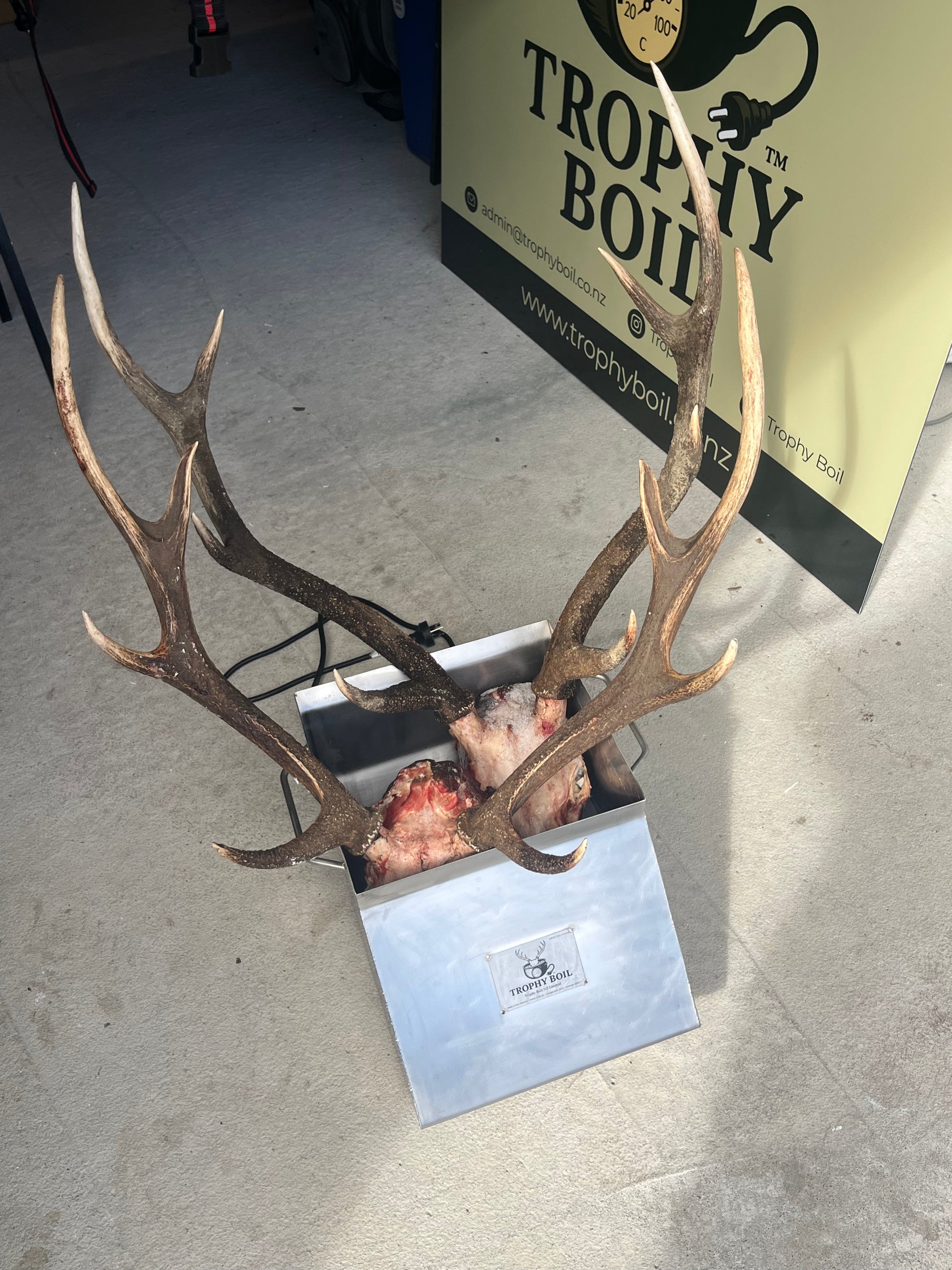 Designed specifically for simmering animal trophy heads of various sizes, this unit features an integrated thermostat-controlled electric heating system, eliminating the inconsistencies, annoyances and mess of traditional gas setups.